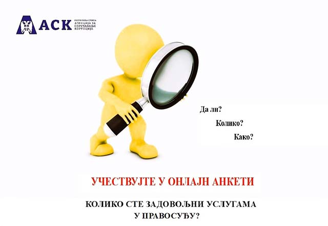 Агенција за спречавање корупције (у даљем тексту: Агенција) уз подршку Високог савета судства спроводи истраживање путем онлајн анкете са кориснинима услуга судова.